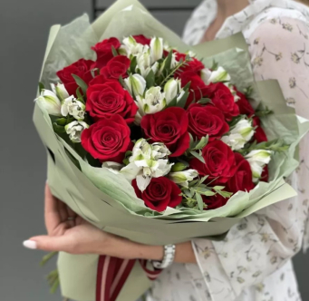 Букет из роз и альстромерий